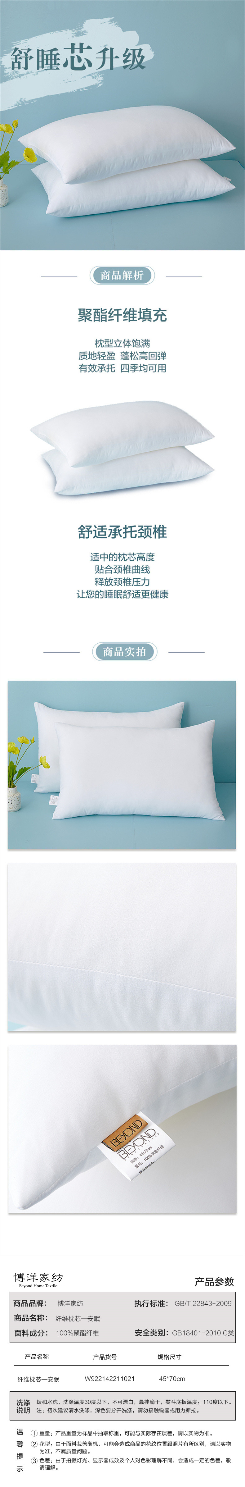 BEYOND博洋家纺 安眠对枕枕头2只